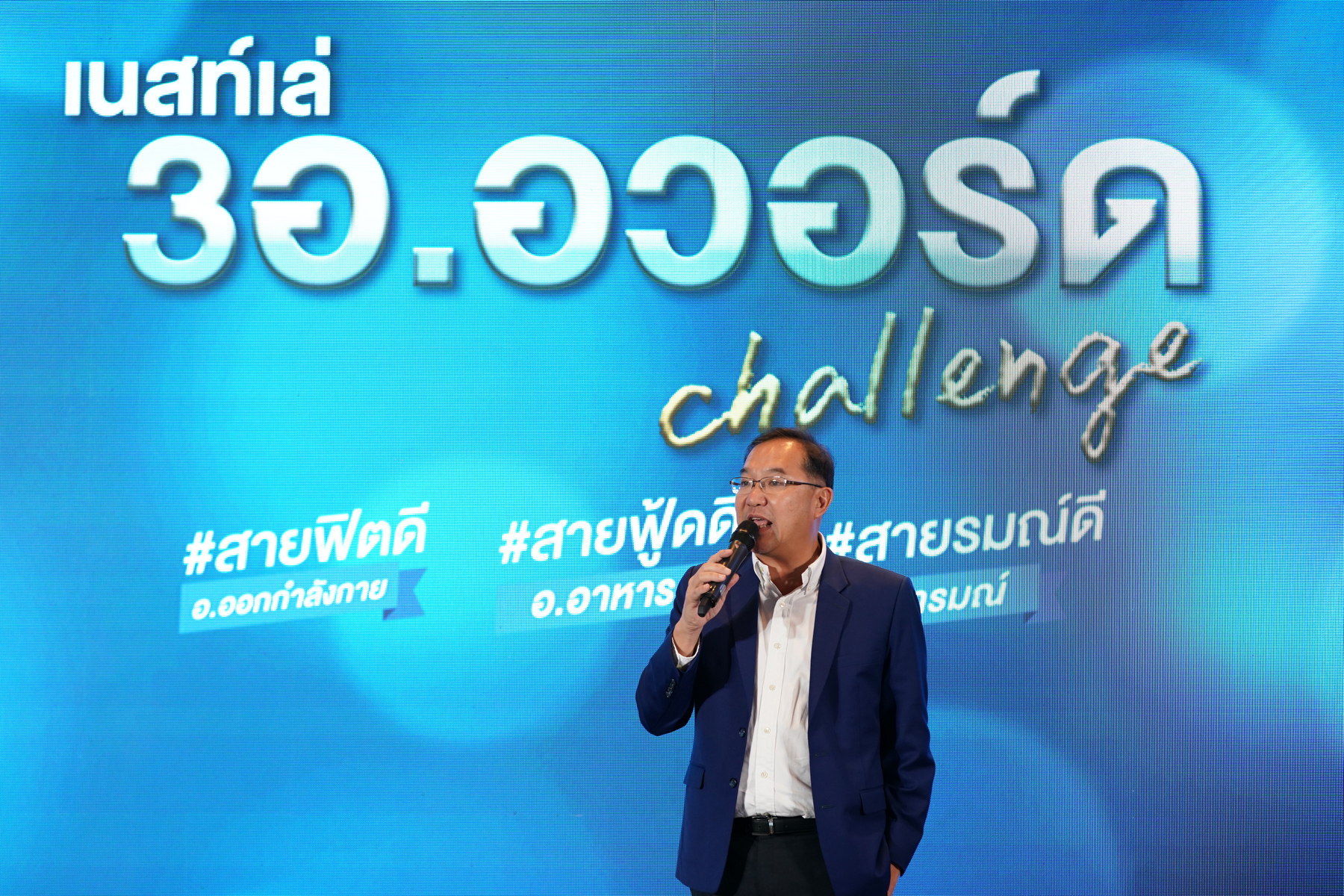 บริษัท เนสท์เล่ (ไทย) จำกัด นำโดยนายวิคเตอร์ เซียห์ ประธานกรรมการและประธานคณะผู้บริหาร เนสท์เล่ อินโดไชน่า จัดงานมอบรางวัลให้กับผู้ชนะจาก กิจกรรม เนสท์เล่ 3อ. อวอร์ด Challenge ที่ได้แชร์ไอเดียสุดสร้างสรรค์ ในการดูแลสุขภาพด้วยหลัก 3อ. และนำมาปรับใช้ในชีวิตประจำวัน โดยมีพลอย-ชิดจันทร์ ห่ง ตัวแทนสายฟิตดี ตั๊ก-บริบูรณ์ จันทร์เรือง ตัวแทนสายรมณ์ดี และ อุ้ม-นพรรตนพปศักดิ์ ตัวแทนสายฟู้ดดี ร่วมแสดงความยินดี พร้อมเปิดเทรนด์พิชิตสุขภาพดีปี 2020 เจาะลึกเคล็ดลับการมีสุขภาพดีอย่างยั่งยืนสำหรับคนรุ่นใหม่ ซึ่งงานมีขึ้นที่โรงแรมอินเตอร์คอนติเนนตัล กรุงเทพฯ