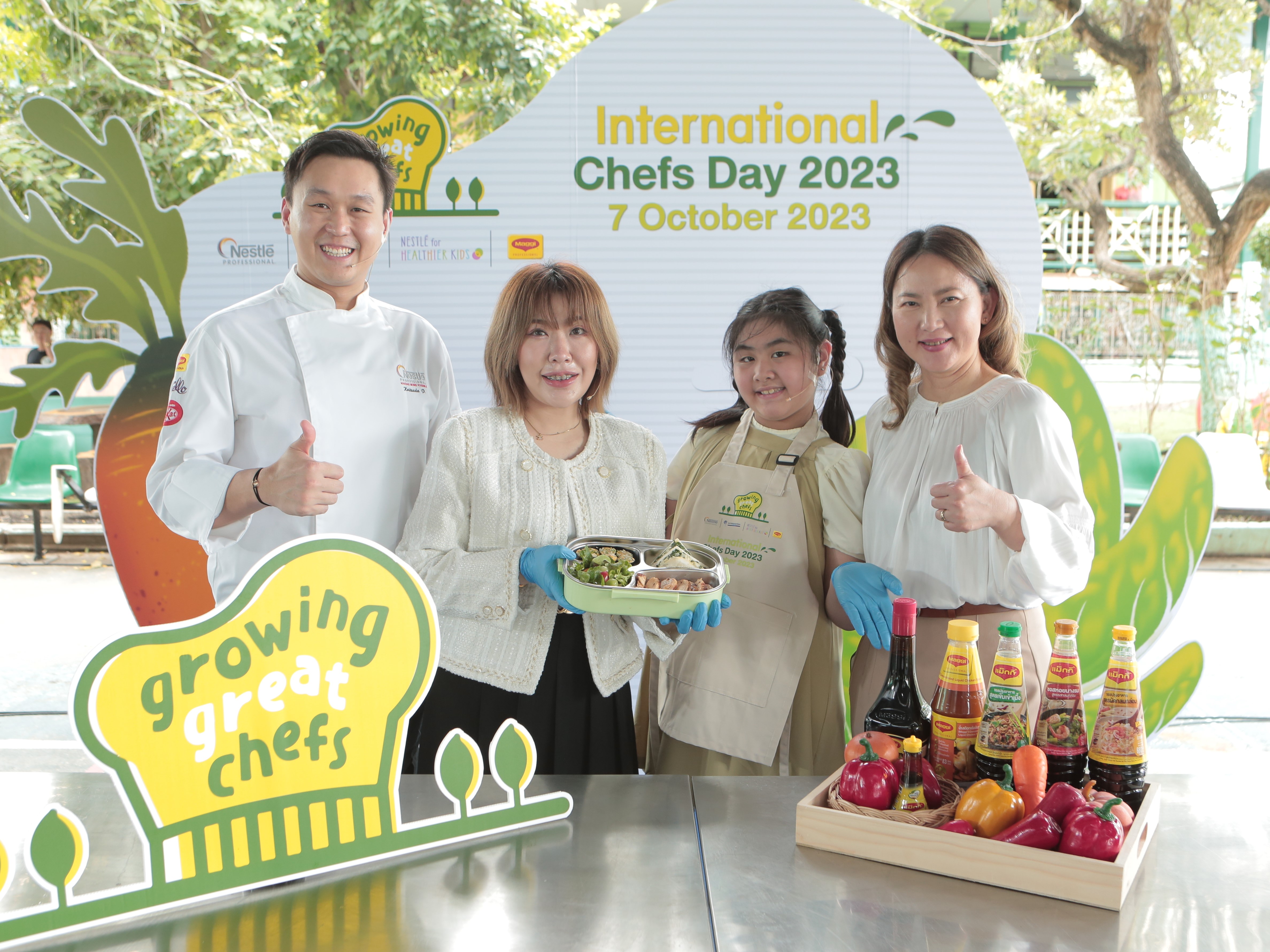 เนสท์เล่ โพรเฟชชันนัล ร่วมฉลอง วันเชฟสากล หรือ International Chefs Day 2023 ผ่านกิจกรรมเชฟชุมชนตัวน้อย จัดเวิร์กชอปเสริมทักษะการทำอาหารให้เด็กๆ ร่วมสร้างสรรค์เมนูแสนอร่อยด้วยผลิตภัณฑ์แม็กกี้ และได้ประโยชน์จากพืชผักสวนครัวแบบจัดเต็ม ภายใต้ธีม Growing Great Chefs” โดยมีเชฟและนักโภชนาการผู้เชี่ยวชาญจากเนสท์เล่ ร่วมส่งต่อความรู้ สร้างความเข้าใจที่ถูกต้องให้แก่เยาวชนไทย ไม่ว่าจะเป็นในเรื่องทักษะการทำอาหาร การเลือกวัตถุดิบที่เหมาะสมตามหลักโภชนาการ และการเลือกรับประทานอาหารที่ดีต่อสุขภาพ พร้อมมุ่งยกระดับวัตถุดิบในท้องถิ่น ด้วยการนำพืชผักสวนครัวในชุมชนมาเป็นส่วนประกอบหลักในการรังสรรค์เมนูที่หลากหลาย ผ่านความร่วมมือกับโรงเรียนศรีบางไทร จังหวัดพระนครศรีอยุธยา ซึ่งเป็นโรงเรียนต้นแบบในการส่งเสริมโภชนาการเด็กวัยเรียนในวิถีใหม่ (Healthy New Normal)