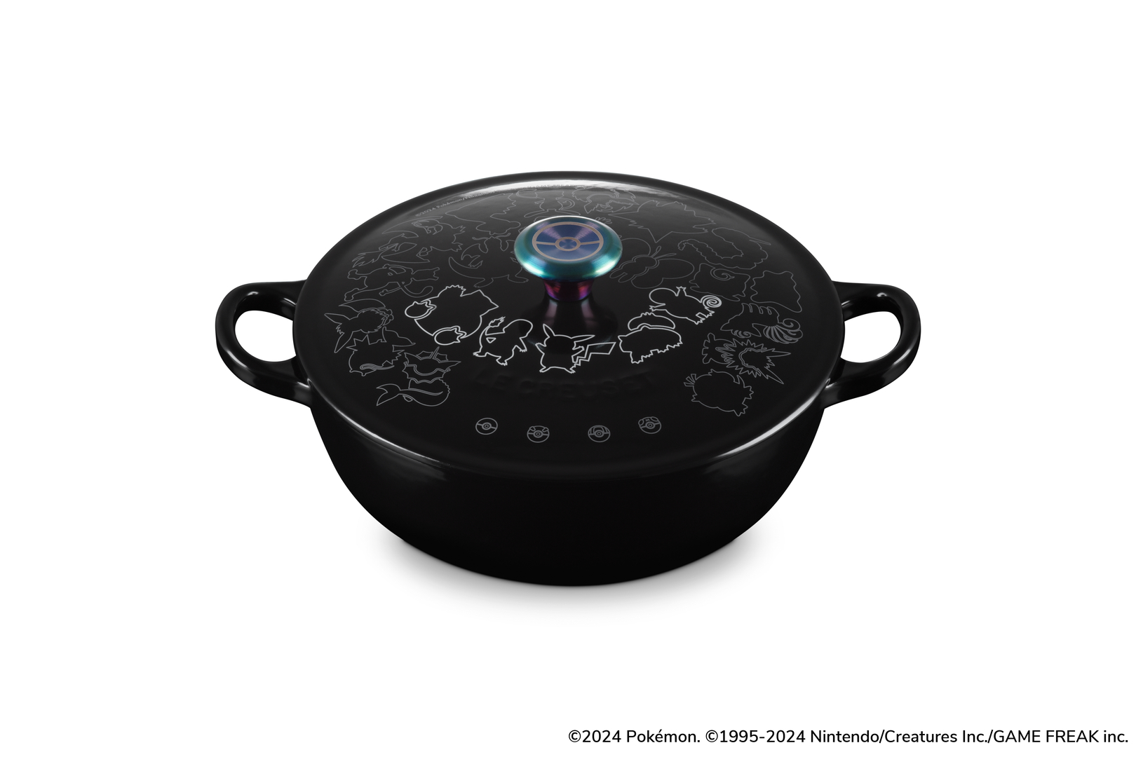 หม้อ “ไชนีแบล็ก” สีโซลิคเฉดเดียว บนฝาตกแต่งอย่างสวยงามด้วยภาพลายเส้นโปเกมอน 23 ตัวและโปเกมอน 4 แบบ เติมลูกเล่นด้วยที่จับที่ออกแบบเป็นรูปไอคอนโปเกมอนสีรุ้งพาสเทล หม้อเหล็กหล่อ Marmite มีรูปทรงมนทำให้ผสมส่วนผสมต่างๆ ในหม้อได้ง่าย เหมาะสำหรับใช้ทำอาหารต้มเคี่ยว รีซอตโต และอื่นๆ