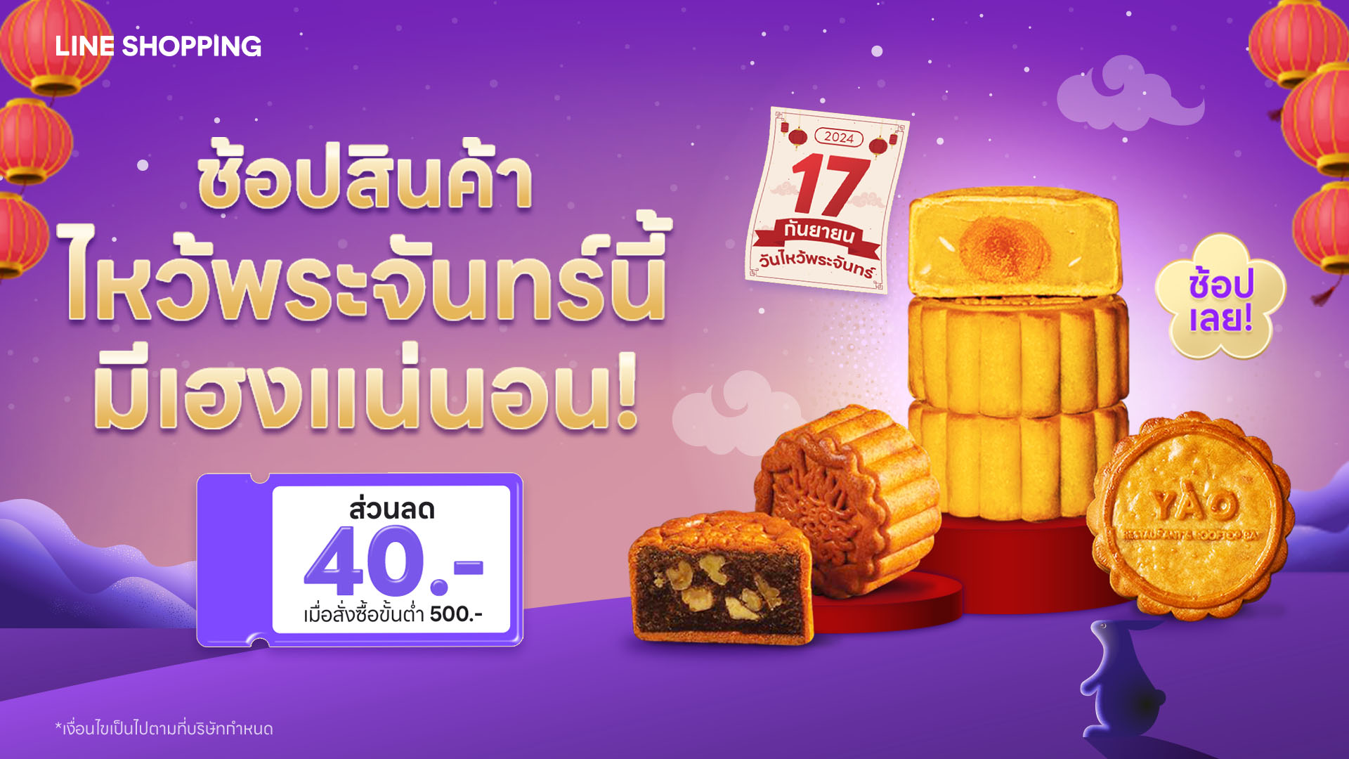 เทศกาลไหว้พระจันทร์ปีนี้ LINE SHOPPING ชวนฉลองเทศกาลกับขนมไหว้พระจันทร์จาก 5 ร้านดัง ที่สร้างตำนานความอร่อยมาอย่างยาวนาน รับประกันความอร่อยด้วยแป้งและไส้สูตรเฉพาะจากวัตถุดิบคุณภาพที่มีให้เลือกสรรตามความชอบ จะทานเองก็ฟิน หรือจะมอบเป็นของขวัญให้ญาติผู้ใหญ่ก็โดนใจ เพราะทุกร้านมาพร้อมแพ็กเกจสุดพรีเมียม ดีไซน์สวยหรู และแฝงไปด้วยความหมายมงคลรับเทศกาล พิเศษ! สั่งผ่าน LINE SHOPPING รับส่วนลด 40 บาท เมื่อสั่งซื้อขั้นต่ำ 500 บาท ตั้งแต่วันที่ 25 - 31 สิงหาคมนี้