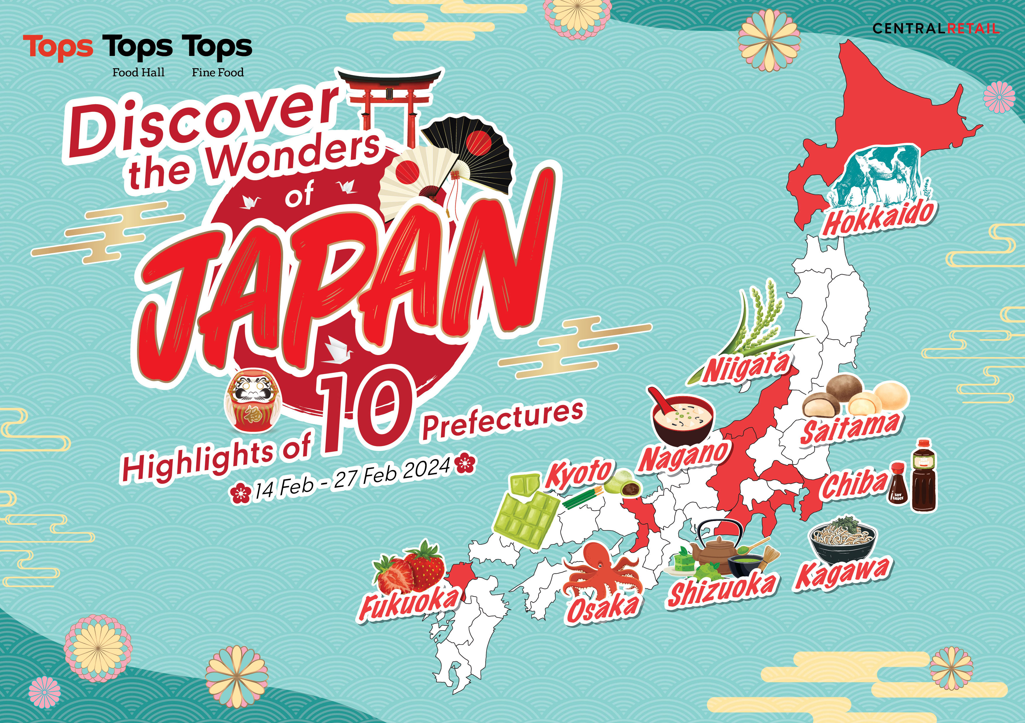 ‘Discover The Wonders of Japan : Highlights of 10 Prefectures’ ที่รวบรวมสินค้าอาหารและวัตถุดิบคุณภาพพรีเมียมจาก 10 เมือง ประเทศญี่ปุ่น รวมกว่า 1,900 รายการ ส่งตรงถึงมือผู้บริโภคชาวไทยได้ลิ้มลองความอร่อยแบบไม่ต้องเดินทางไกล อาทิ ข้าวญี่ปุ่นเกรดพรีเมียมจากนีงาตะ ที่ได้รับการปลูกและดูแลจากหิมะที่ละลายจากภูเขา, ข้าวโพดอบกรอบสไตล์ญี่ปุ่น ของฝากขึ้นชื่อจากไซตามะ, ขนมขึ้นชื่อจากฮอกไกโด เมืองแห่งนมวัวที่มีความอุดมสมบูรณ์, ปลาหมึกทอดกรอบรสดั้งเดิมจากโอซาก้า, ชาเขียวพรีเมียมจากอำเภออุจิแห่งเกียวโต บ้านเกิดของชาเขียวมัทฉะกัน พร้อมด้วยสารพันผลไม้ เนื้อนำเข้านานาชนิด อาหารแช่แข็งและสินค้าขนมขบเคี้ยวยอดนิยมอีกมากมาย การันตีคุณภาพความสด อร่อยส่งตรงจากประเทศญี่ปุ่น ให้ลูกค้าได้เลือกชิมและช้อปอย่างครบครัน ตั้งแต่วันนี้ – 27 กุมภาพันธ์ 2567 ที่ ท็อปส์, ท็อปส์ ฟู้ด ฮอลล์, ท็อปส์ ไฟน์ ฟู้ด และท็อปส์ เดลี่