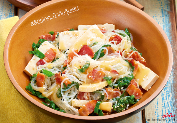 ในชีวิตประจำวันเราเห็นเมนูที่ใช้วัตถุดิบเป็นผักคะน้าอยู่ไม่น้อย อย่าง คะหน้าหมูกรอบ หรือผัดผักคะน้า วันนี้ทางแม่บ้านมีอีกหนึ่งเมนูมาแนะนำโดยการนำผักคะน้าทำเป็นสลัดโดยใส่วุ้นเส้นและปรุงรสลงไป ก็จะได้เมนูผักคะน้าแบบใหม่แสนอร่อยแล้วค่ะ