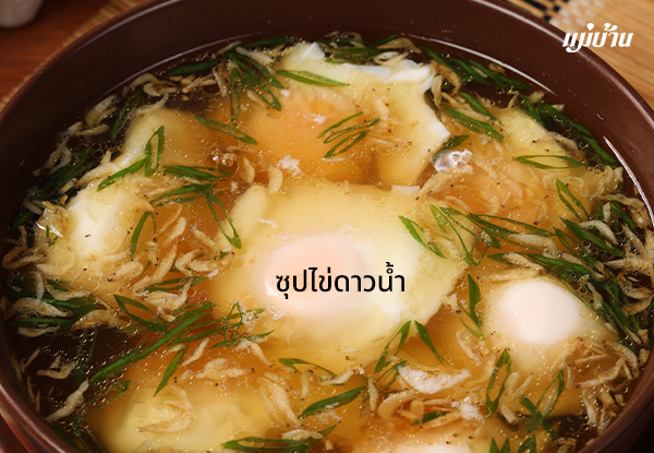 5. ตักไข่ดาวน้ำใส่ลงในน้ำซุป จัดเสิร์ฟ