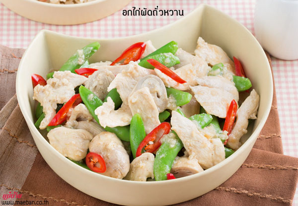 อาหารเลิศรส แคลอรี่ต่ำง่ายๆ กับอกไก่หั่นชิ้น เนื้อแน่นนุ่มขนาดพอดีคำ ผัดพอสุกหอมกับ ถั่วลันเตา กรุบกรอบ รสหวาน แล้วปรุงรสจนกลมกล่อม ก็จัดเสิร์ฟได้เลยค่ะ เป็นอีกหนึ่งเมนูที่เต็มเปี่ยมไปด้วยความอร่อยทุกคำที่ได้ลิ้มลองจริงๆ