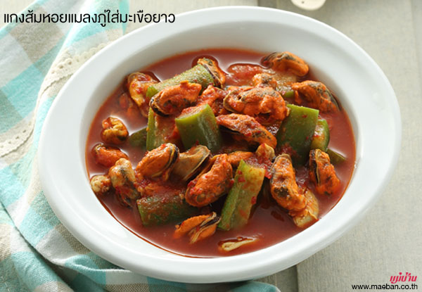 มาลิ้มลองความอร่อยกับแกงไทยรสเลิศ อย่าง แกงส้มหอยแมลงภู่ใส่มะเขือยาว หอยแมลงภู่เนื้อแน่นตัวโต๊โต ใส่หม้อต้มพร้อมกับมะเขือยาว และน้ำพริกแกงส้ม สีส้มสวยที่โขลกละเอียด แล้วปรุงรสง่ายๆ ด้วยน้ำปลา น้ำมะขามเปียก น้ำตาลปี๊บ จนเข้ากันดีแล้วกลายเป็นแกงส้มรสเด็ดที่ใครได้กินก็ยกนิ้วให้ในความอร่อยเลยค่ะ