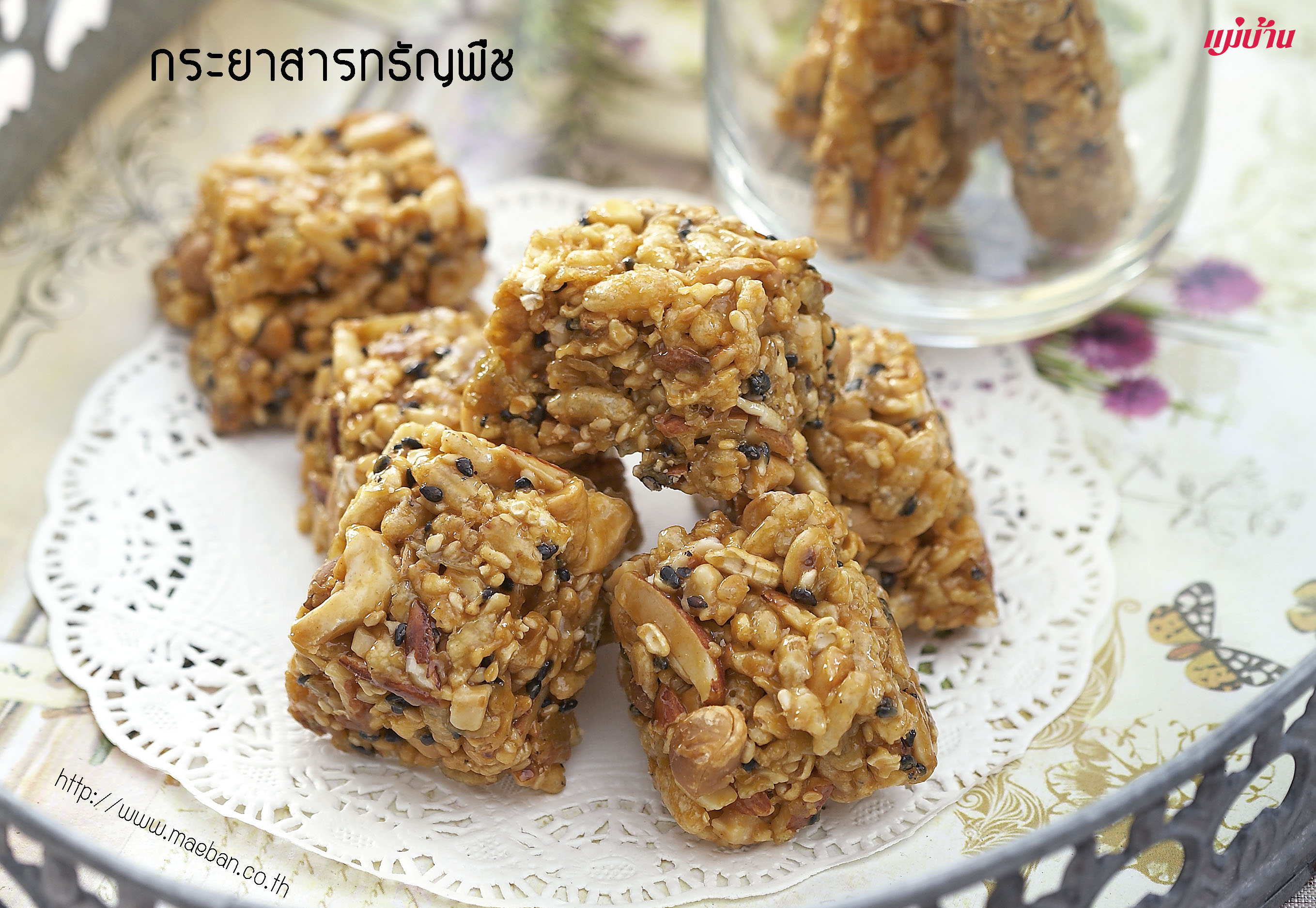 เป็นขนมหวานที่เกิดขึ้นจากภูมิปัญญาของคนไทย ที่จะให้ทุกคนได้รับสารอาหารจากธัญพืชนานาชนิด ส่วนผสมหลักก็มีข้าวตอก ข้าวเม่า ถั่วลิสง งา นำไปคั่วให้สุก แล้วนำมากวนกับน้ำอ้อย จนกว่าจะเหนียวกรอบเกาะกันเป็นปึก สามารถปั้นเป็นก้อนหรือตัดเป็นชิ้นๆ ก็ได้ เพื่อให้เป็นขนมที่เก็บไว้กินได้นาน เหมาะสำหรับผู้ที่นิยมทำขนมไทย สามารถจำหน่ายได้ทั้งปี
