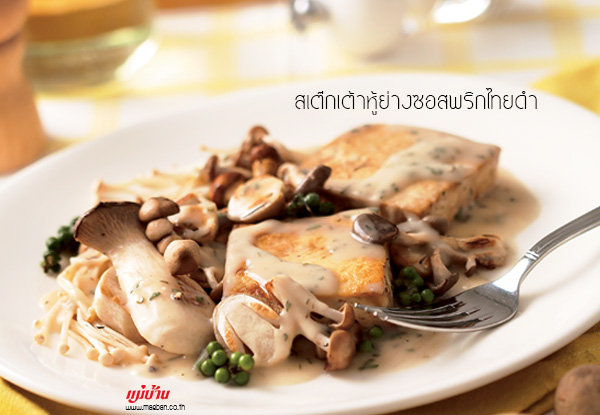 เต้าหู้ชิ้นโตก็สามารถนำมาทำอาหารฝรั่งได้ โดยเฉพาะเมนูเด็ดๆ อย่างสเต๊ก ที่จัดเสิร์ฟพร้อมกับซอสพริกไทยดำรสเข้มข้น เพิ่มอรรถรสในการรับประทาน รวมทั้งช่วยทำให้เจริญอาหารขึ้นอีกโขเลยทีเดียวสำหรับเมนูเผ็ดร้อนแบบนี้