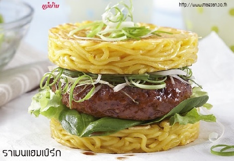 เมนูนี้เป็นคำเรียกแฮมเบอร์เกอร์ของชาวญี่ปุ่น โดยดัดแปลงมาจากอเมริกันด้วยเช่นกัน โดยนำเนื้อสัตว์มาสับ ผสมกับมันบด และหอมหัวใหญ่ แล้วทอดจนสุก ราดด้วยน้ำซอสเข้มข้น รับประทานพร้อมกับข้าวสวยและผักสด แต่มาวันนี้เมนูถูกแปรเปลี่ยนอีกครั้ง โดยการนำเส้นราเมนมาแปลงร่างให้กลายเป็นขนมปังประกบเข้ากับเนื้อก้อน แล้วรับประทานพร้อมซอสเข้มข้นเช่นเดิม...